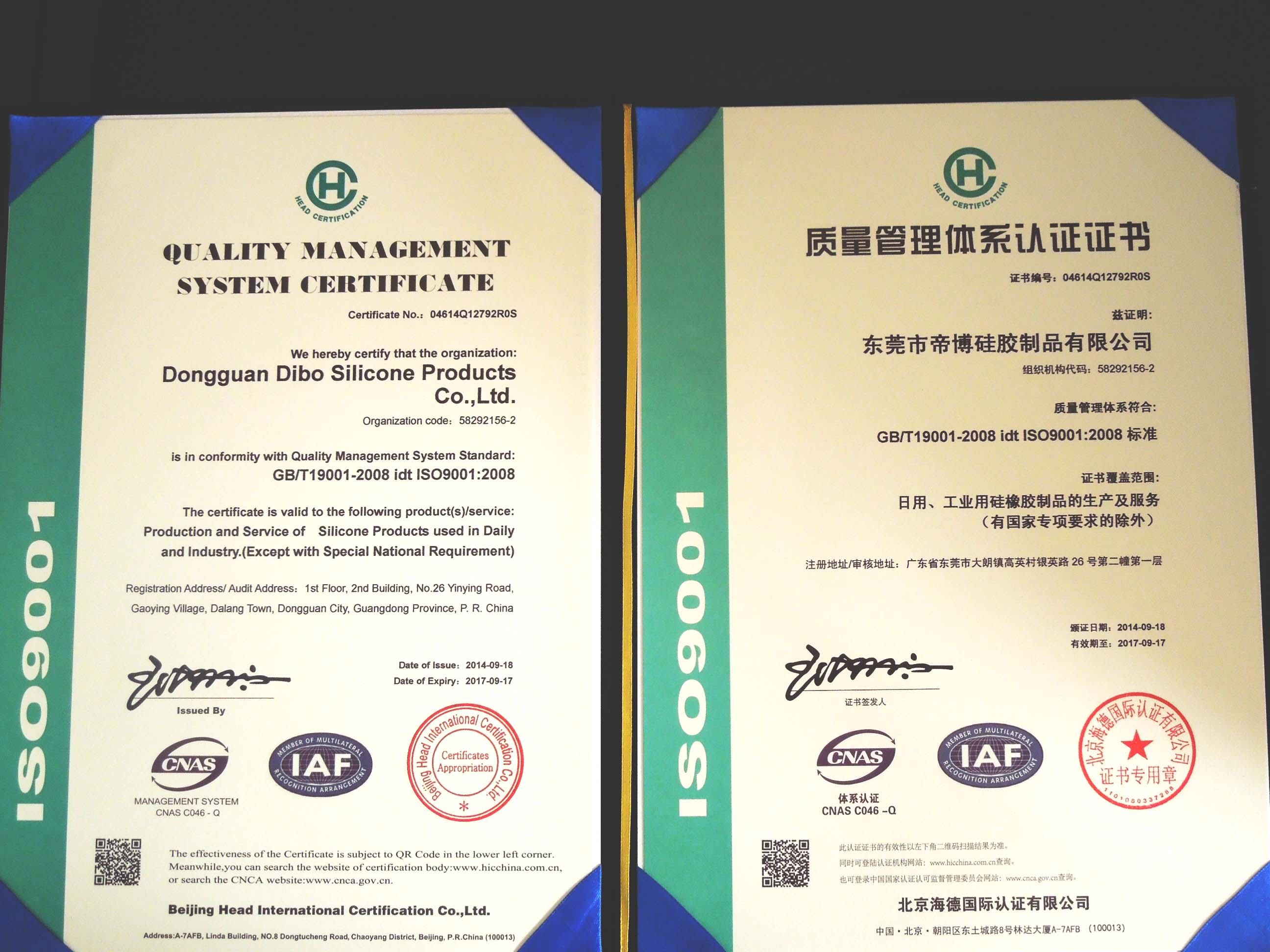 目前,公司已經(jīng)順利通過ISO9001質(zhì)量管理體系認(rèn)證,并取得相關(guān)證書,
