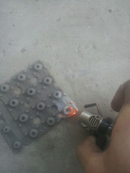 大家可以看到使用高溫1200度的打火機燃燒部位會出現變紅,產生白色煙霧,使產品有點變形,被燒的部位有一點散落的感覺,
